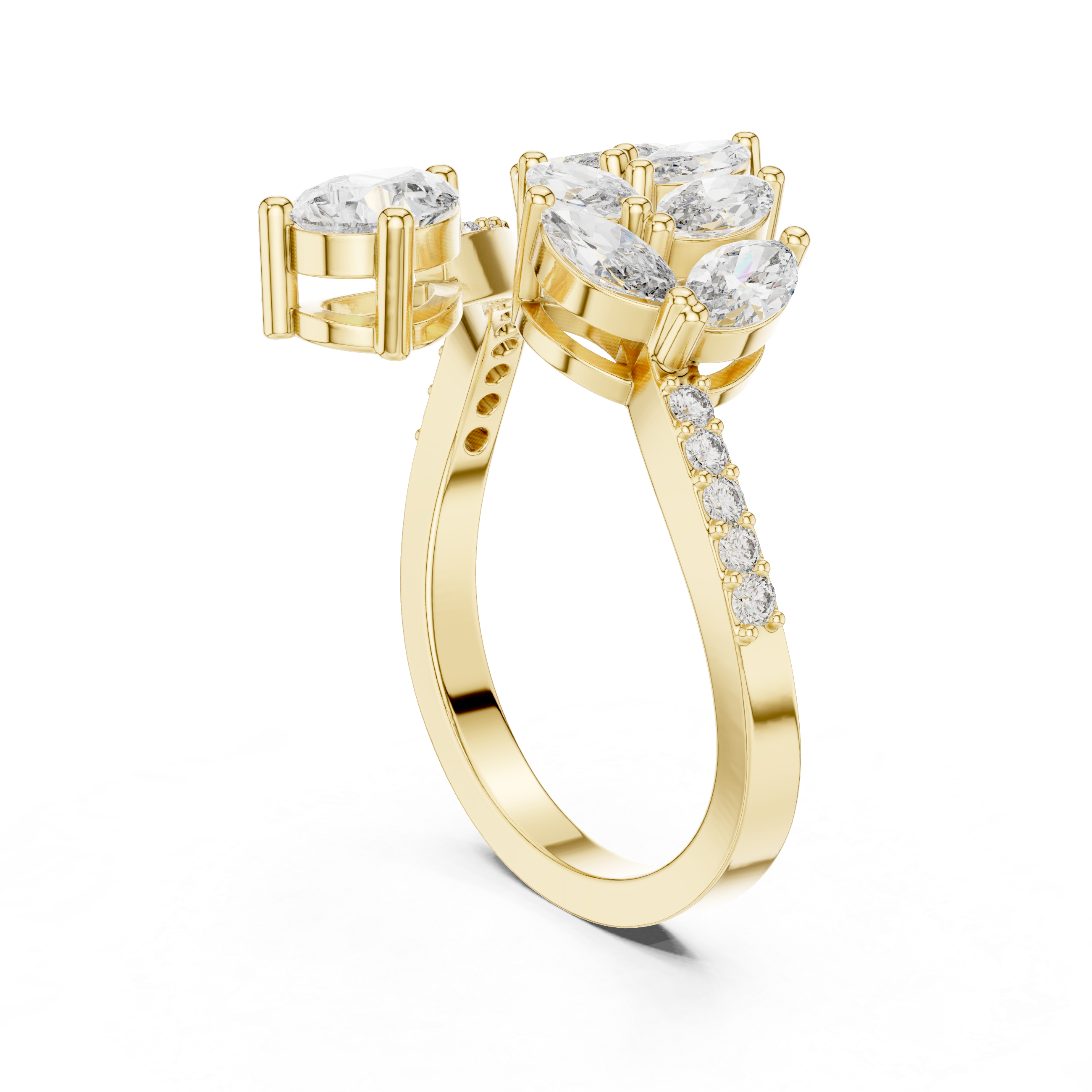 Explore the Marquise & Pear Diamonds Leaves Stackable Engagement Ring – a stunning piece inspired by nature’s beauty, featuring gracefully arranged marquise and pear-shaped diamonds that form delicate leaf-like patterns. Set in a secure prong setting, this ring is perfect for stacking or wearing solo as a captivating statement. Its timeless design blends elegance and symbolism, making it a meaningful expression of love and commitment.