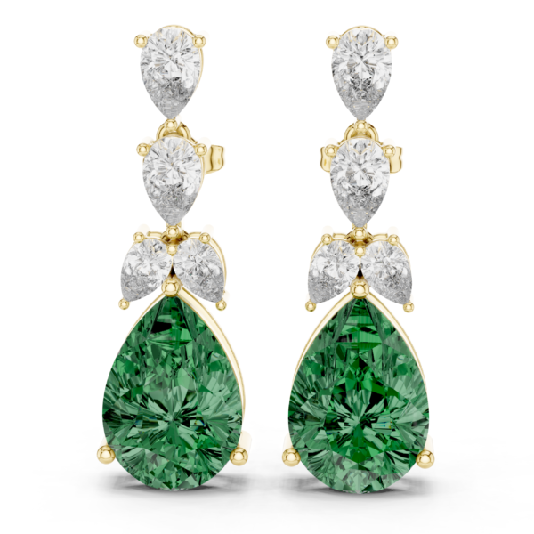 Pear Cut and Color Stone Diamonds Dangling Earrings