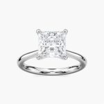 Explore the Princess Diamond Claw Prong Solitaire Stackable Ring – showcasing a stunning princess-cut diamond set in a secure claw prong setting. This sleek and elegant design is perfect for stacking or wearing solo, offering a timeless symbol of love and refined style.