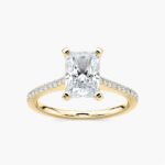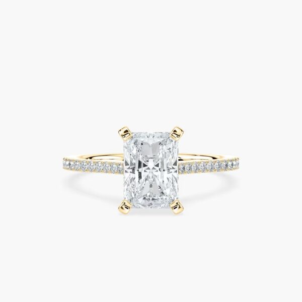 Explore the Radiant Diamonds Prong Set Stackable Engagement Ring – featuring brilliant radiant-cut diamonds set in a secure prong setting. This elegant and versatile design is perfect for stacking or wearing alone, offering a timeless and customizable piece to celebrate your love.