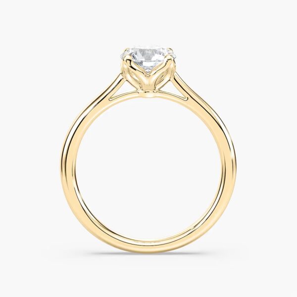 Discover the Round Diamond Floral-Inspired Solitaire Engagement Ring – featuring a stunning round diamond set in a delicate, floral-inspired design. This elegant and unique piece combines classic beauty with a touch of nature, making it the perfect symbol of everlasting love.